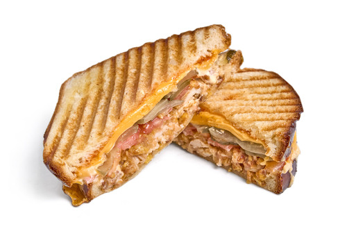 • Бріош, куряче філе гриль, сир чедер, помідор, огірок маринований, цибуля хрустка, соус